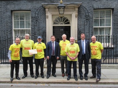 Six representative PAG members, supported by Stephen Doughty (Labour MP for Cardiff South and Penarth) and Jonathan Edwards (Plaid Cymru MP for Carmarthen East and Dinefwr) were received at 10 Downing Street this afternoon where they handed in letters from all of the main political parties in Wales, reminding the Prime Minister of the ongoing injustice that FAS members are suffering as inflation erodes the already reduced pensions they are receiving from the FAS and asking for a meeting with the Pensions Minister to make our case in more detail. You can read the letters from (in alphabetical order) Conservative, Labour, Plaid Cymru and UKIP here.